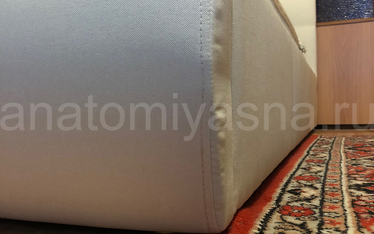 Кровать в обивке: Велюр Velutto 24. Быстро поднимается основание, 2 ящика для белья. Все прошито, нареканий нет. Пользуемся 4 месяца. Спасибо!